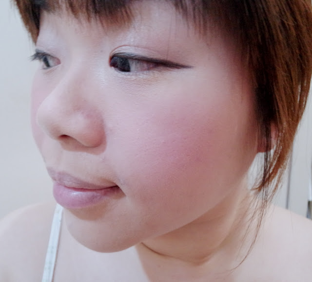 From the same Mukka palette, i used the bright pink blush on for a fresh look since the O.Mary compact powder totally muddy up my complexion >.<