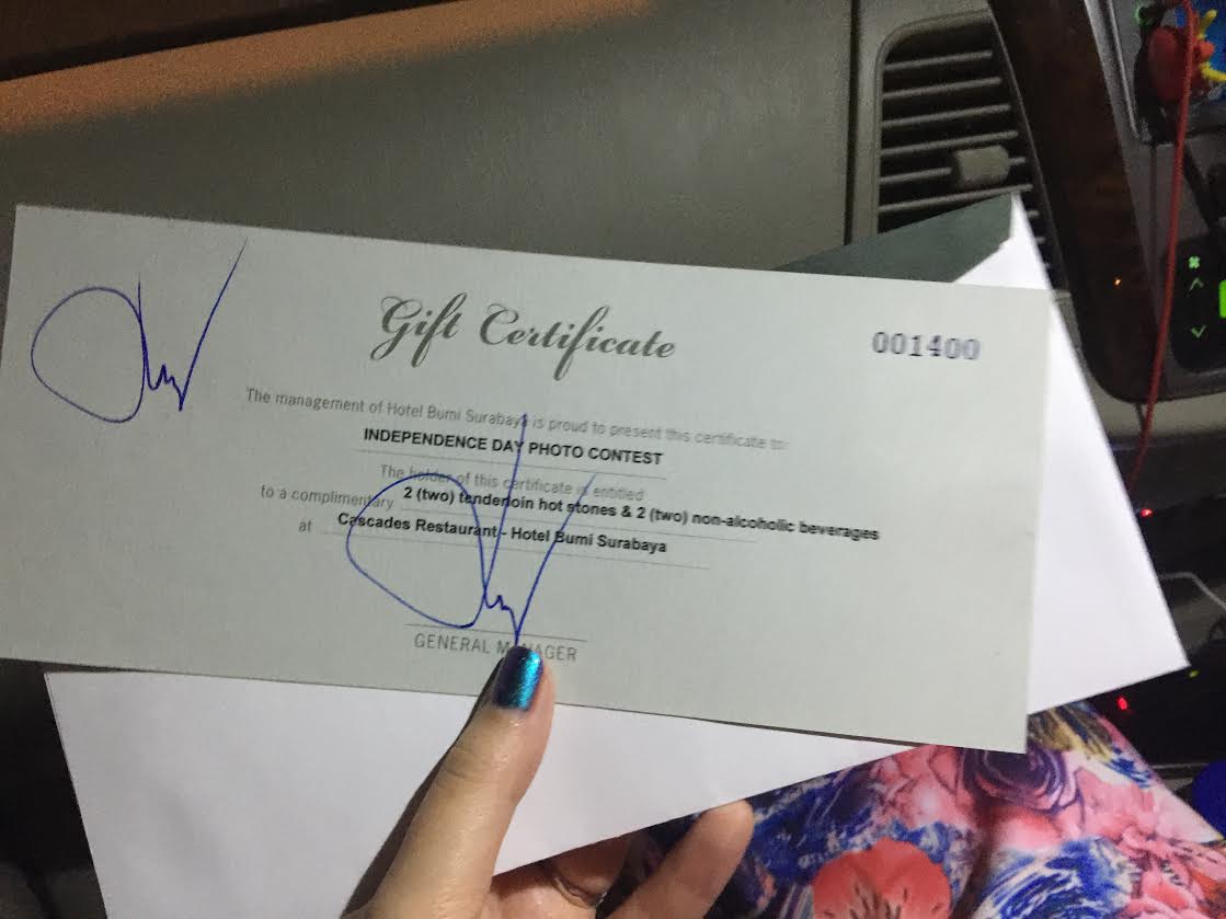 After that, we rushed home to pick Little O up for dinner. I actually won a (dinner voucher for two) a photo contest from Bumi Surabaya City Resort on Independence Day and hunny suggested to use it on my bday, that's a great idea! LOL.