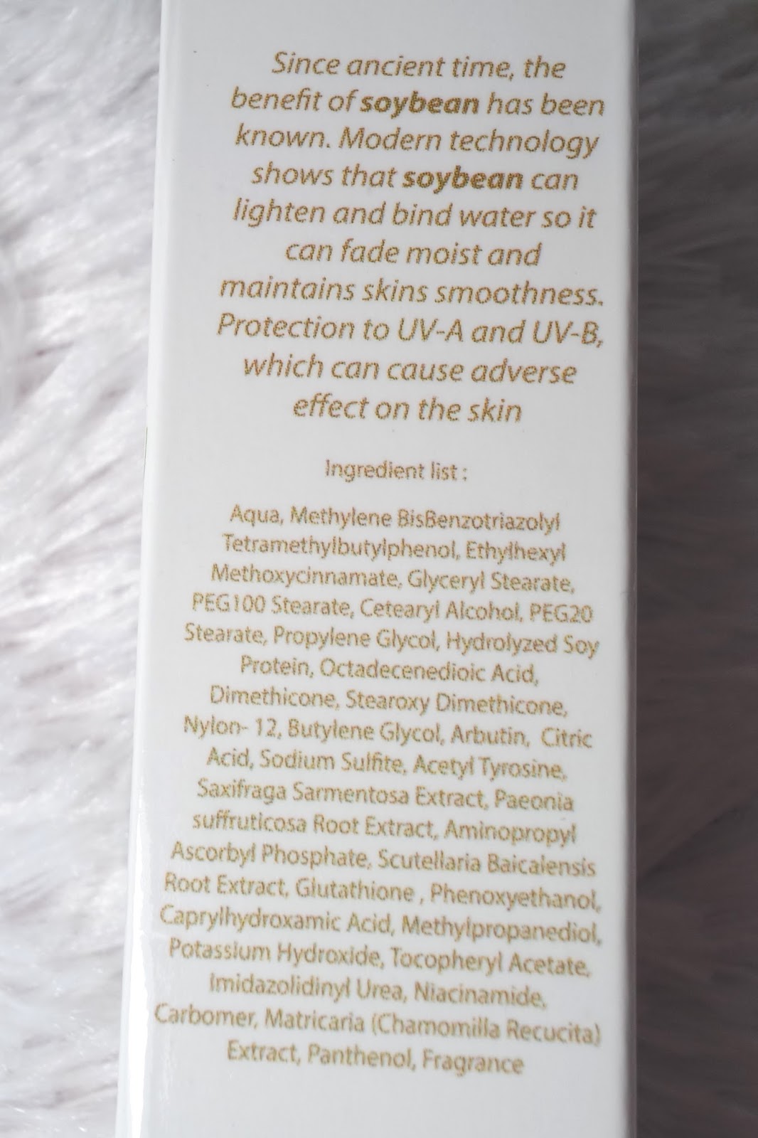 | The Whitening Serum comes in a small box with soybean pics on it |